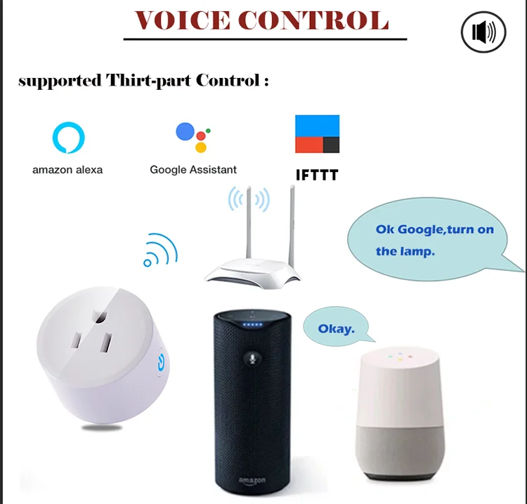The alfawise smart wifi plug is supposed to be usable with amazon alexa or google home, in addition to the genuine app control.